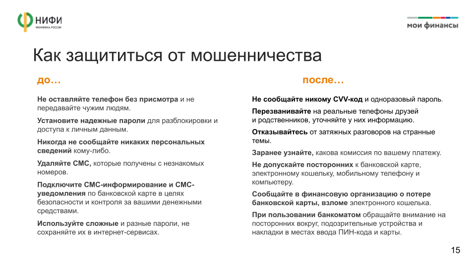 Сегодня мы с вами узнаем основы необходимости формирования финансовой подушки безопасности, поговорим про финансовые риски и рассмотрим навыки технологической безопасности, узнаем о возможностях финансового мошенничества и о действиях, которые необходимо предпринять, чтобы не стать жертвой мошенников, и многое другое.